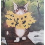 「猫のダヤン 麻混生地」¥1980(税込み)は、ブルーとカーキの2色の中にダヤンが