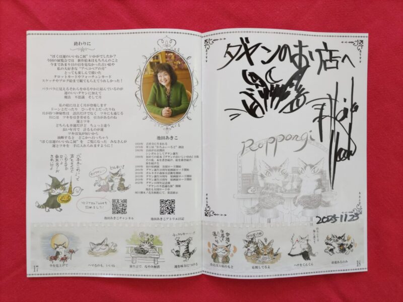 大盛況 「ぼくは運のいいねこ」展 公開済み: 2025年11月24日更新: 2025年11月24日作成者: ダヤンのお店カテゴリー: お知らせ *公式プログラム おはようございます 昨日夫が、「ぼくは運のいいねこ展」に」行ってきました 三連休の中日、大勢の来場者で大盛況!! 久しぶりに会えたわちファン&スタッフ方々 皆さんお元気で何よりでした 会場には、地下鉄大江戸線が一番便利のようですね 「ぼくは運のいいねこ展」は、12月1日(月)まで開催しています 皆さんどうぞ、六本木にお出かけくださいね。 *本日、11月24日(月)「ダヤンのお店」はお休みです。 関連記事 今週の一推し おはようございます。 相模湖も昨日は猛暑日でしたが、幸い夜になるとクーラー無しでも過ごす事が出来ましたよ。 今日も朝から暑くなりそうですね。皆さん熱中症には気をつけてお過ごし下さいね。 夏休み前の今週の一推しは、「黒板メ […] 公開済み: 2024年7月5日更新: 2024年7月5日作成者: ダヤンのお店カテゴリー: お知らせ 今週の一推し こんにちは 相模湖は、秋晴れの金曜日になりましたよ 紅葉を楽しむのには、絶好な週末になりそうですね 今週の一推しは、周りの紅葉観賞と「猫のダヤン おかしなお茶会フィギュア」です 「猫のダヤン お菓子なお茶会フィギュア」は […] 公開済み: 2024年11月22日更新: 2024年11月23日作成者: ダヤンのお店カテゴリー: お知らせ Dayan Happy Birthday!! 今日7月7日は、「ダヤンの誕生日」 ダヤンお誕生日おめでとう!! わちふぃーるどにやってくるまで、ダヤンは誕生日を知りませんでした。 そこで、カシガリ山の三人の魔女に生まれた日を見つけてもらおうと訪ねました。 まずは、タ […] 公開済み: 2021年7月7日更新: 2021年7月7日作成者: ダヤンのお店カテゴリー: お知らせ この投稿へのコメント コメントはありません。 コメントを残す コメントをキャンセルメールアドレスが公開されることはありません。 ※ が付いている欄は必須項目ですコメント ※ 名前 ※ メール ※ サイト 上に表示された文字を入力してください。 Δ この投稿へのトラックバック トラックバックはありません。 トラックバック URL