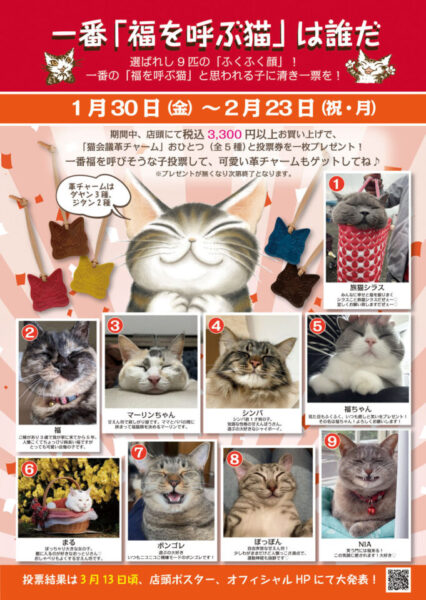 一番「福を呼ぶ猫」は誰だ 公開済み: 2026年1月30日更新: 2026年1月30日作成者: ダヤンのお店カテゴリー: お知らせ おはようございます 上記の日程で一番「福を呼ぶ猫」は誰だを、開催します 皆さんの福を呼ぶ猫ちゃんは、何番でしょうか? 寒い中ですが、皆さんのご来店お待ちしていますね。 今週末「ダヤンのお店」は、通常営業いたします 関連記事 今週の一推し 大きな大きなトート こんにちは 梅雨入りしました今週の一推しは、大きな大きな「リバーシブルトート」です。 サイズ 400x460x140 絵柄 メヒコとアルカイック 前面にプリントが入った表と、シンプルなプリントの内。気分でリバーシブル出 […] 公開済み: 2024年6月27日更新: 2024年6月27日作成者: ダヤンのお店カテゴリー: お知らせ Merry Christmas!! *ヨールカプレート1996〜2004 *ヨールカプレート2005〜2013 こんにちは 寒いX‘masになりそうな週末ですね。 過去に発売された18枚の「ヨールカプレート」を載せてみました。 皆さんは、何枚 […] 公開済み: 2023年12月21日更新: 2023年12月21日作成者: ダヤンのお店カテゴリー: お知らせ 7月の朝 おはようございます。 2022年も半年が過ぎ今日から7月になってしまいましたね。 昨日、明日プレオープンする「とこはむ」さんのキッチンカー「Sanzoku Babies」で試食会をしました。詳細をお知らせしますね。 7月 […] 公開済み: 2022年7月1日更新: 2022年7月1日作成者: ダヤンのお店カテゴリー: お知らせ この投稿へのコメント コメントはありません。 コメントを残す コメントをキャンセルメールアドレスが公開されることはありません。 ※ が付いている欄は必須項目ですコメント ※ 名前 ※ メール ※ サイト 上に表示された文字を入力してください。 Δ この投稿へのトラックバック トラックバックはありません。 トラックバック URL