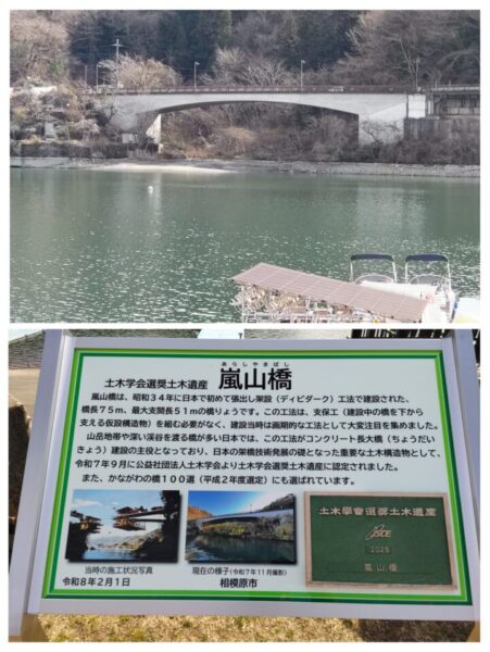 土木学会選奨土木遺産 公開済み: 2026年2月5日更新: 2026年2月5日作成者: ダヤンのお店カテゴリー: お知らせ こんにちは 過ごしやすい午後、湖畔に散歩に出かけました 毎年季節毎に変化する「嵐山」の下に架かっている「嵐山橋」が 令和7年9月に「土木学会選奨土木遺産」に選奨されたプレートが、設置されていました これから少しずつ過ごしやすくなりますので、相模湖にお出かけの時は、是非眺めてみて下さいね。 今週末「ダヤンのお店」は、通常営業いたします 皆さんのご来店お待ちしていますね。 関連記事 ダヤンの「夏祭り」開催のお知らせ おはようございます。 お日さまが懐かしかった7月も31日に、、、明日あたり梅雨明けの予報ですね。 これからの暑さにお役に立つ手ぬぐいをプレゼントする、「ダヤンの夏祭り」を下記の日程で、開催いたします。 日時 7月31日 […] 公開済み: 2020年7月31日更新: 2020年7月31日作成者: ダヤンのお店カテゴリー: お知らせ 02 開店時間変更のお知らせ おはようございます。 今朝の相模湖は、初霜が降り初冬を迎えたようです。 本日12月2日(土)の開店時間が、午後1時〜になります。 「ヨールカパーティ」イベント中大変申し訳ありませんが、宜しくお願いします。 […] 公開済み: 2023年12月2日更新: 2023年12月2日作成者: ダヤンのお店カテゴリー: お知らせ 今週の一推し おはようございます。 これからの季節 毎日使用しても良し 飾っても良しの「アート刺繍ミニタオル」 「青い街」「グアナファト」「オアハカの街」が、今週の一押しです。 店内にて発売中ですので、手にとってみて下さいね。 きっと […] 公開済み: 2024年6月7日更新: 2024年6月7日作成者: ダヤンのお店カテゴリー: お知らせ この投稿へのコメント コメントはありません。 コメントを残す コメントをキャンセルメールアドレスが公開されることはありません。 ※ が付いている欄は必須項目ですコメント ※ 名前 ※ メール ※ サイト 上に表示された文字を入力してください。 Δ この投稿へのトラックバック トラックバックはありません。 トラックバック URL